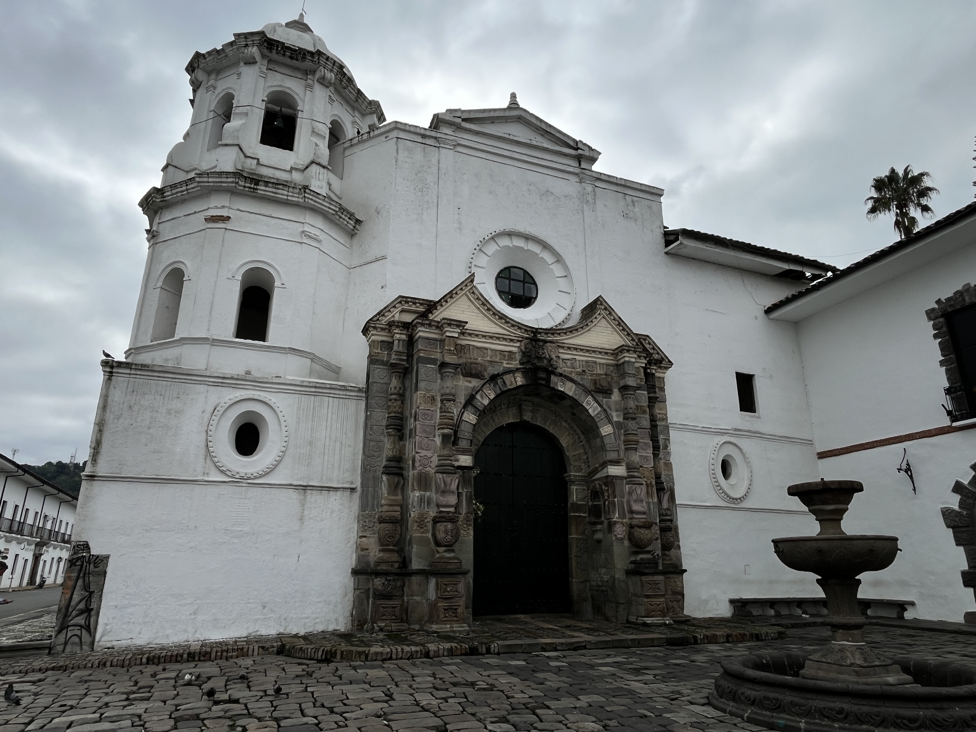 Construido a finales del siglo XVI, el estilo arcaizante de su fachada la convierte en una joya del Barroco Americano. En su interior se encuentra la talla de Nuestra Señora del Rosario, tal vez la mas antigua de la Ciudad y el pulpito de estilo neoclásico diseñado por el Sabio Caldas.