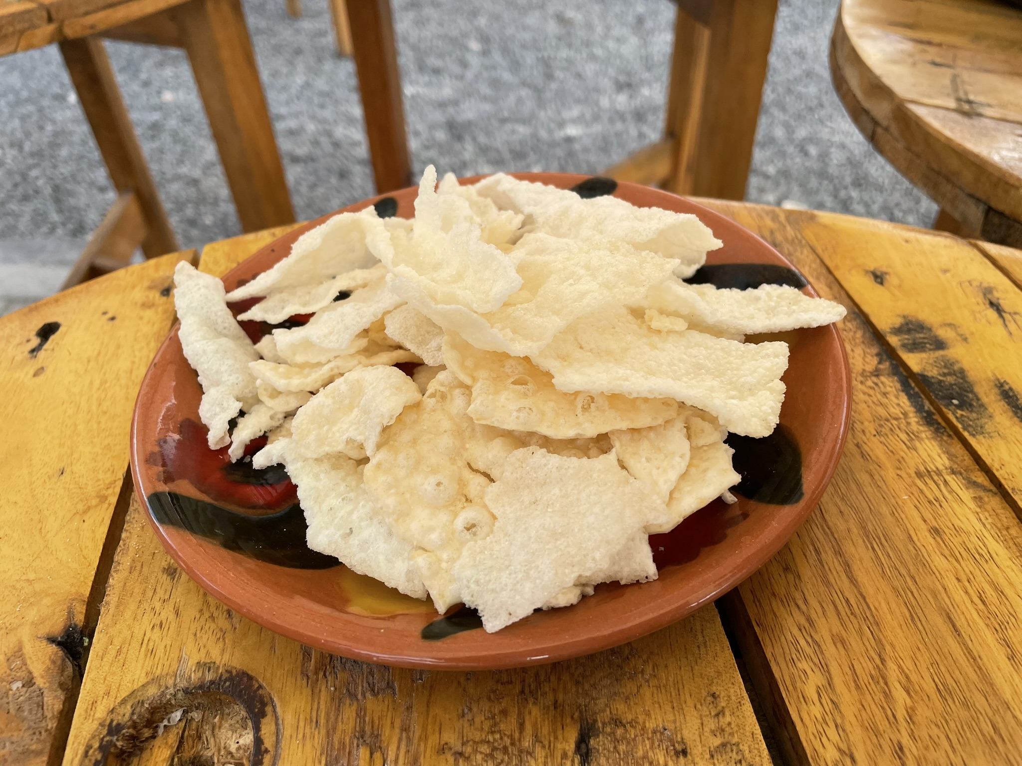 Pasabocas a base de tortilla de maíz crocante, servida con una variedad de acompañamientos como guacamole o hogao.