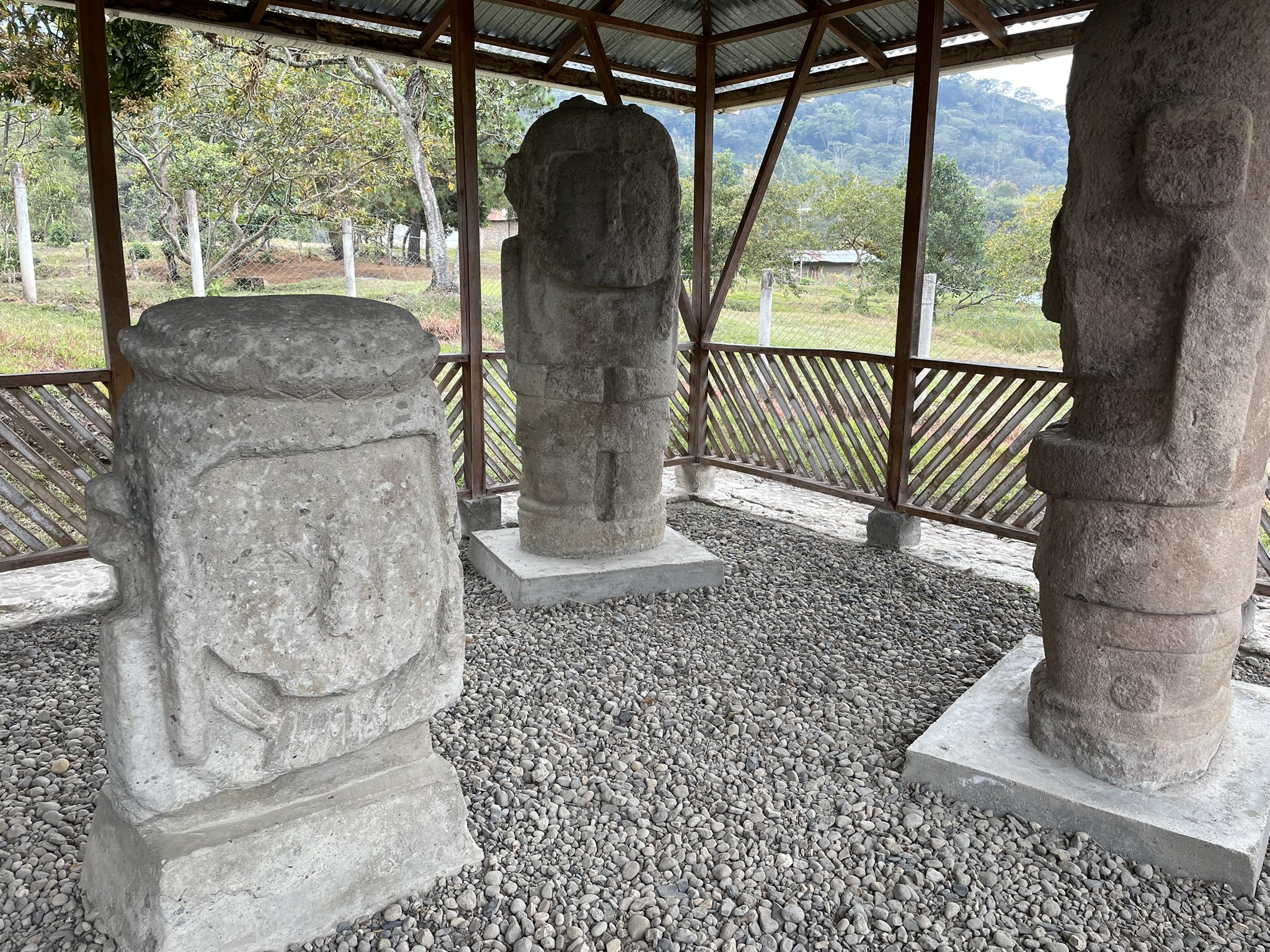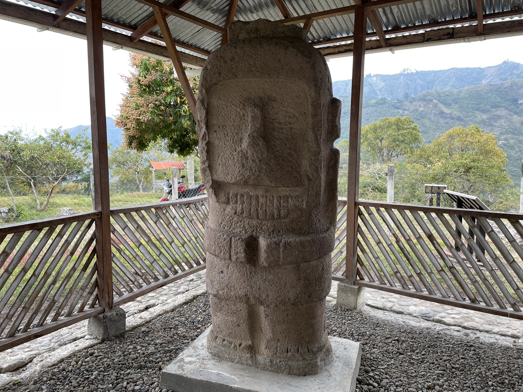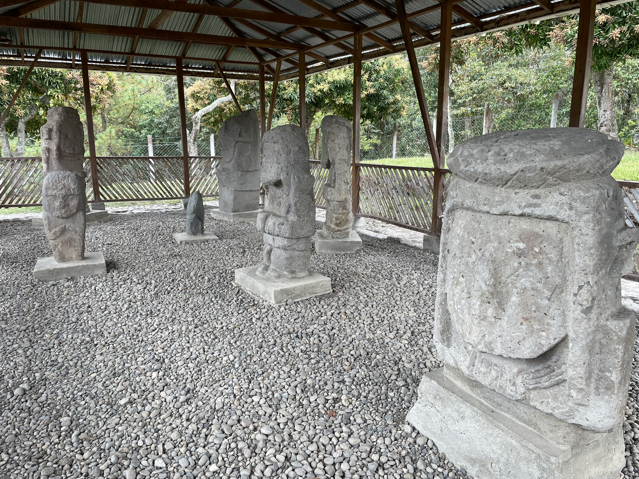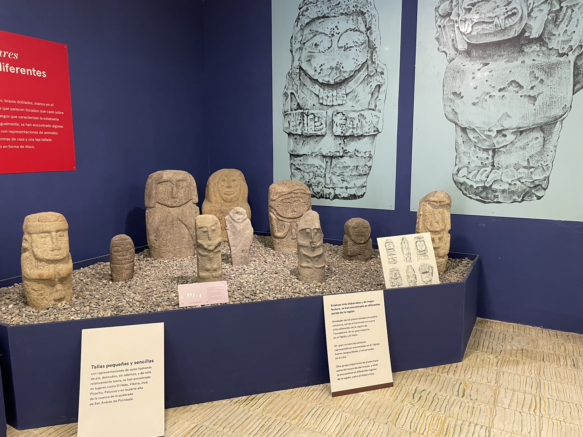 En el Tablón se encuentran expuestas nueve estatuas en piedra con representaciones de figuras humanas y animales, con formas, dimensiones y rasgos diferentes, que tal vez representan personajes importantes como dignatarios, sacerdotes, guerreros o seres mitológicos. Tienen una unidad estilística que las distingue y que se clasifican básicamente en dos grupos: El primero comprende estatuas pequeñas y sencillas de talla relativamente tosca que representan seres humanos desnudos y casi sin adornos; y el segundo estatuas talladas de manera más cuidadosa y detallada, con figuras de más de dos metros de alto, por lo general de personajes vestidos.