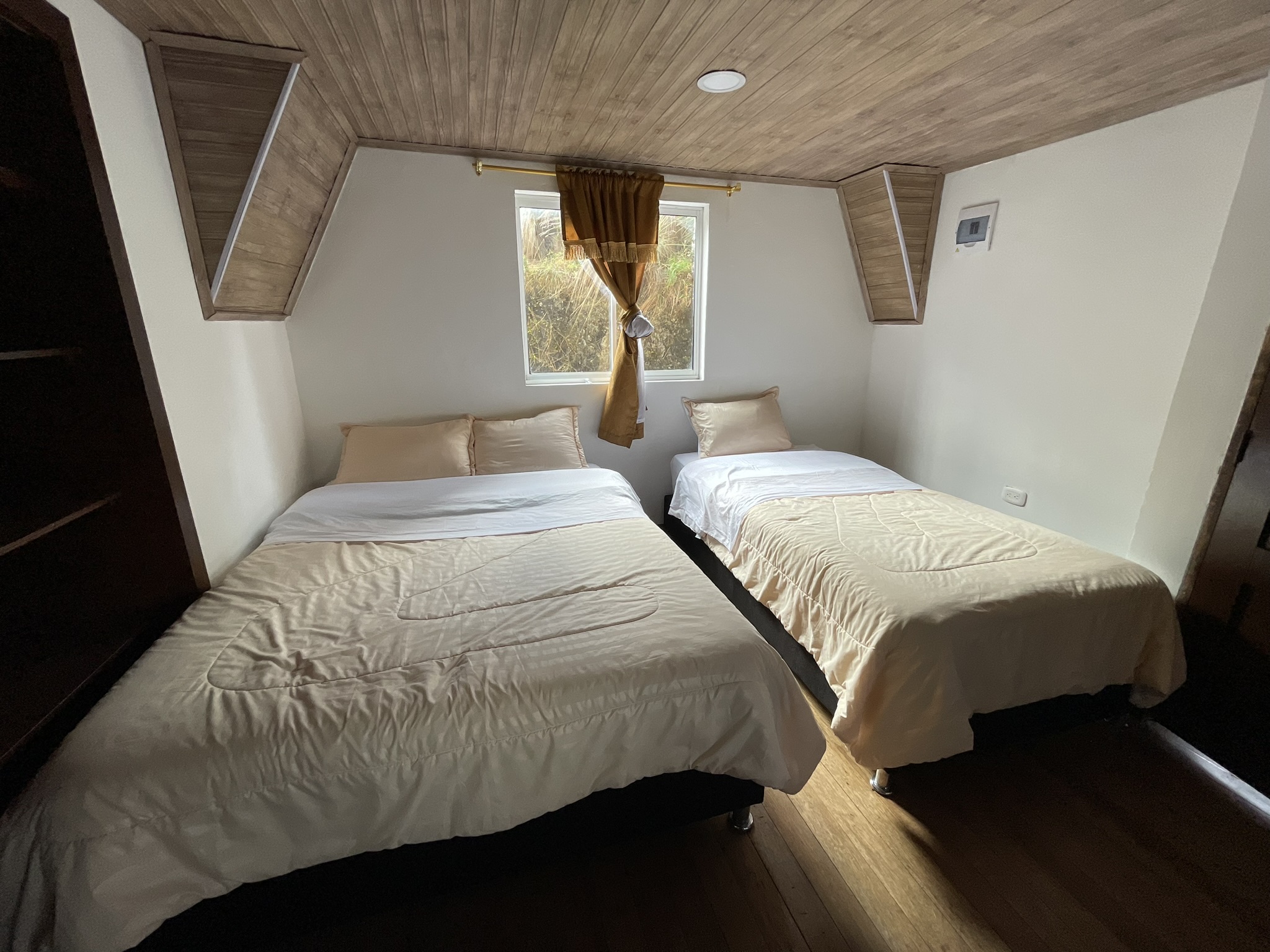 Nuestras cabañas están diseñadas para brindar comodidad y calidez. Con capacidad para 6 personas, incluyen una cama doble, cuatro camas sencillas, baño privado, y una chimenea interna que añade un toque acogedor, perfecto para las frescas noches del páramo. El desayuno está incluido para que empieces tu día con energía.